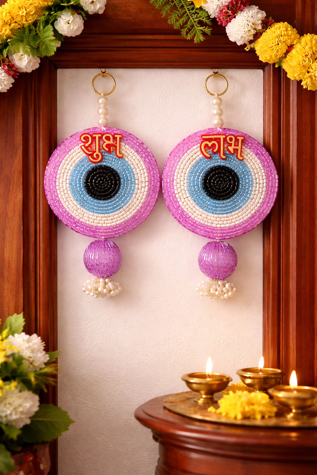 Designed in a modern yet traditional style, this Shubh Labh pair is lightweight, durable, and reusable, making it a long-lasting decorative piece. Whether you place it on your main door, mandir, or gifting hampers, it radiates festive vibes while inviting good luck and prosperity into your space.