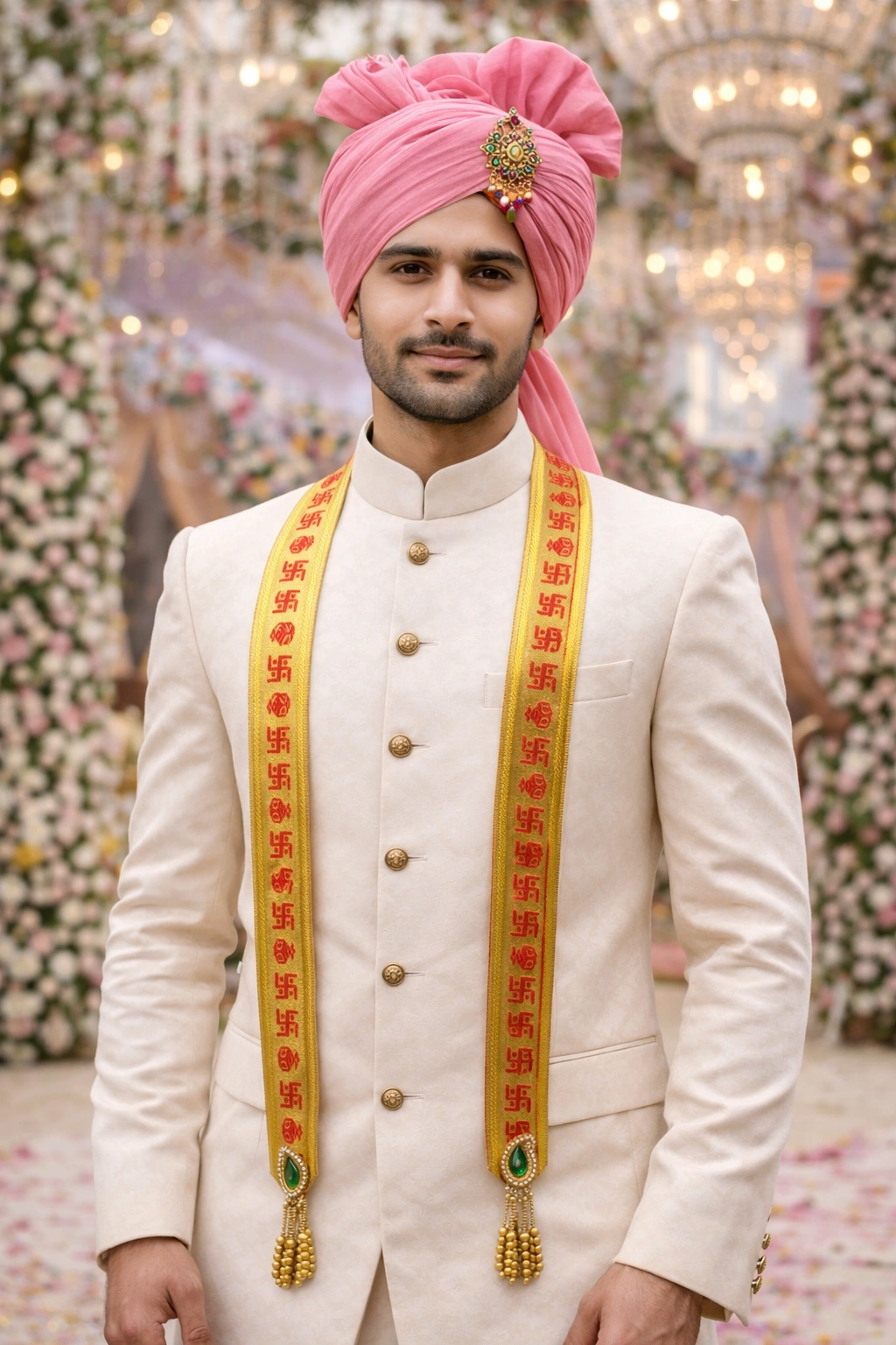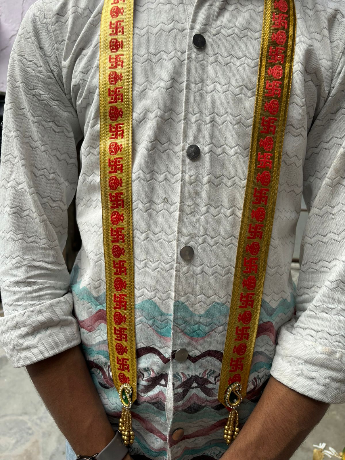 Discover stylish Barat Swagat Patka in Golden Sathiya Design made for traditional Indian weddings and grand guest entry. Perfect for destination weddings, haldi-mehndi functions, and honor stoles. Custom designs and bulk pricing available.