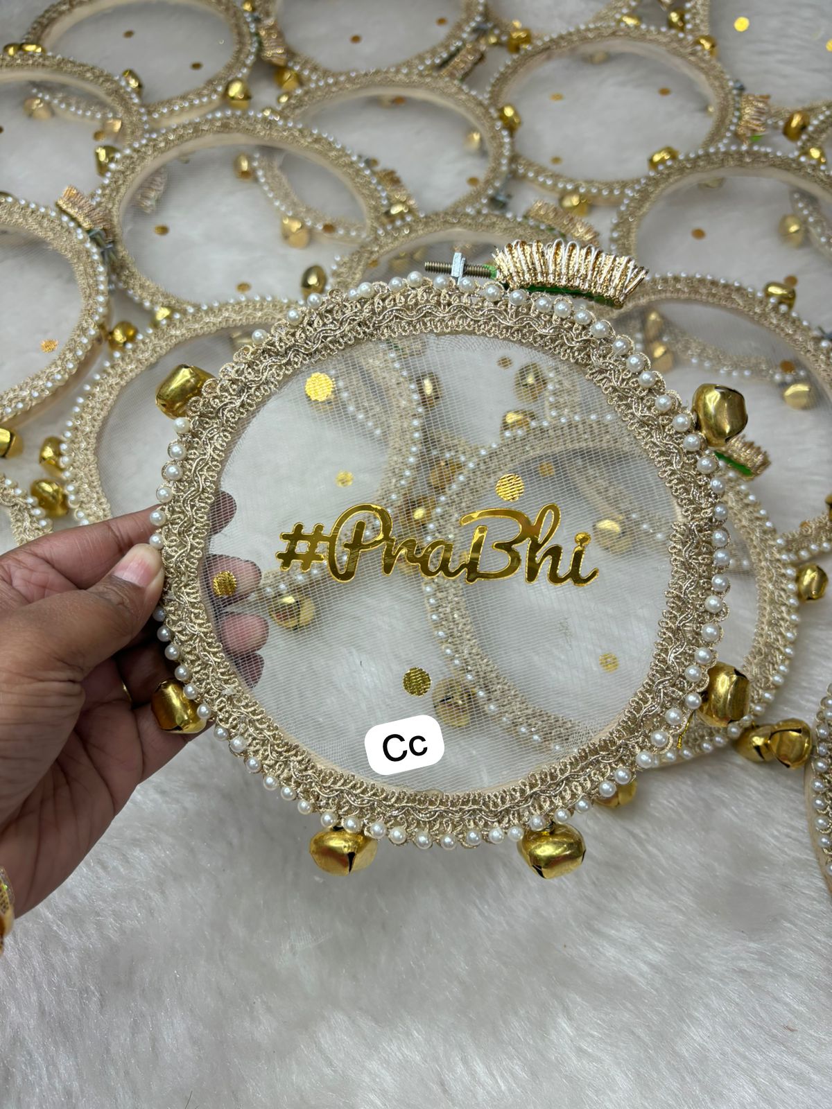 Each dhapli is personalised with names, dates, or a short message, making it a meaningful keepsake as well as a functional musical instrument. It produces a clear, soothing sound that complements bhajans, kirtans, and traditional wedding rituals beautifully.