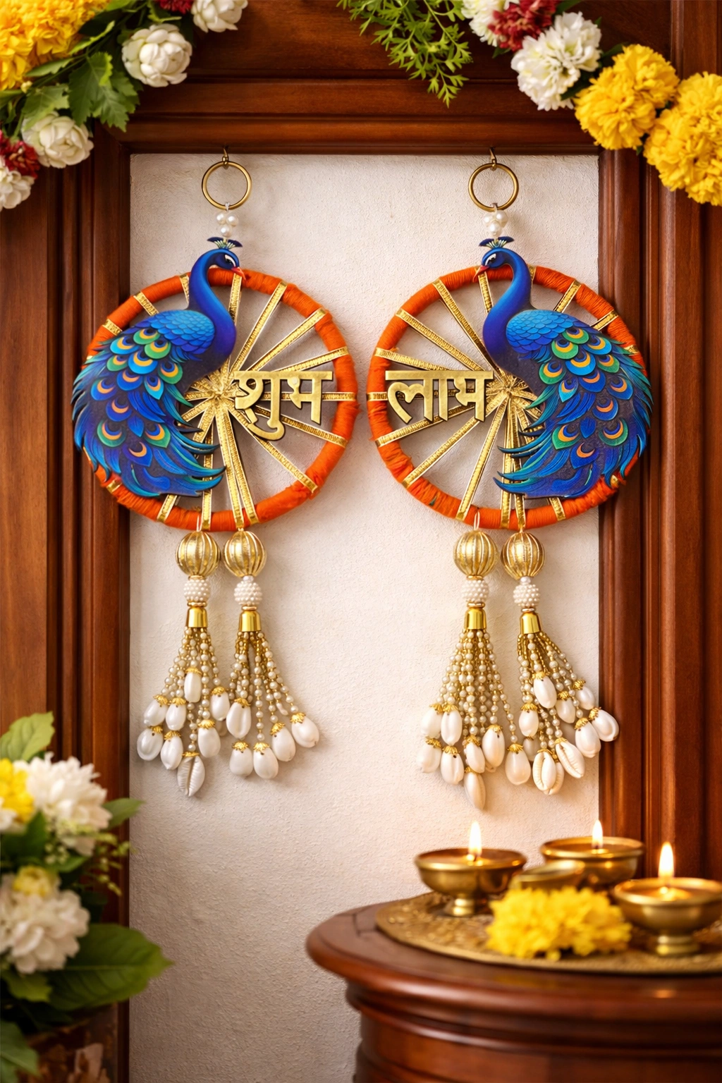 This Shubh Labh pair is easy to hang and blends perfectly with both modern and traditional interiors. It is also an ideal gifting option for family, friends, and clients during festive occasions.