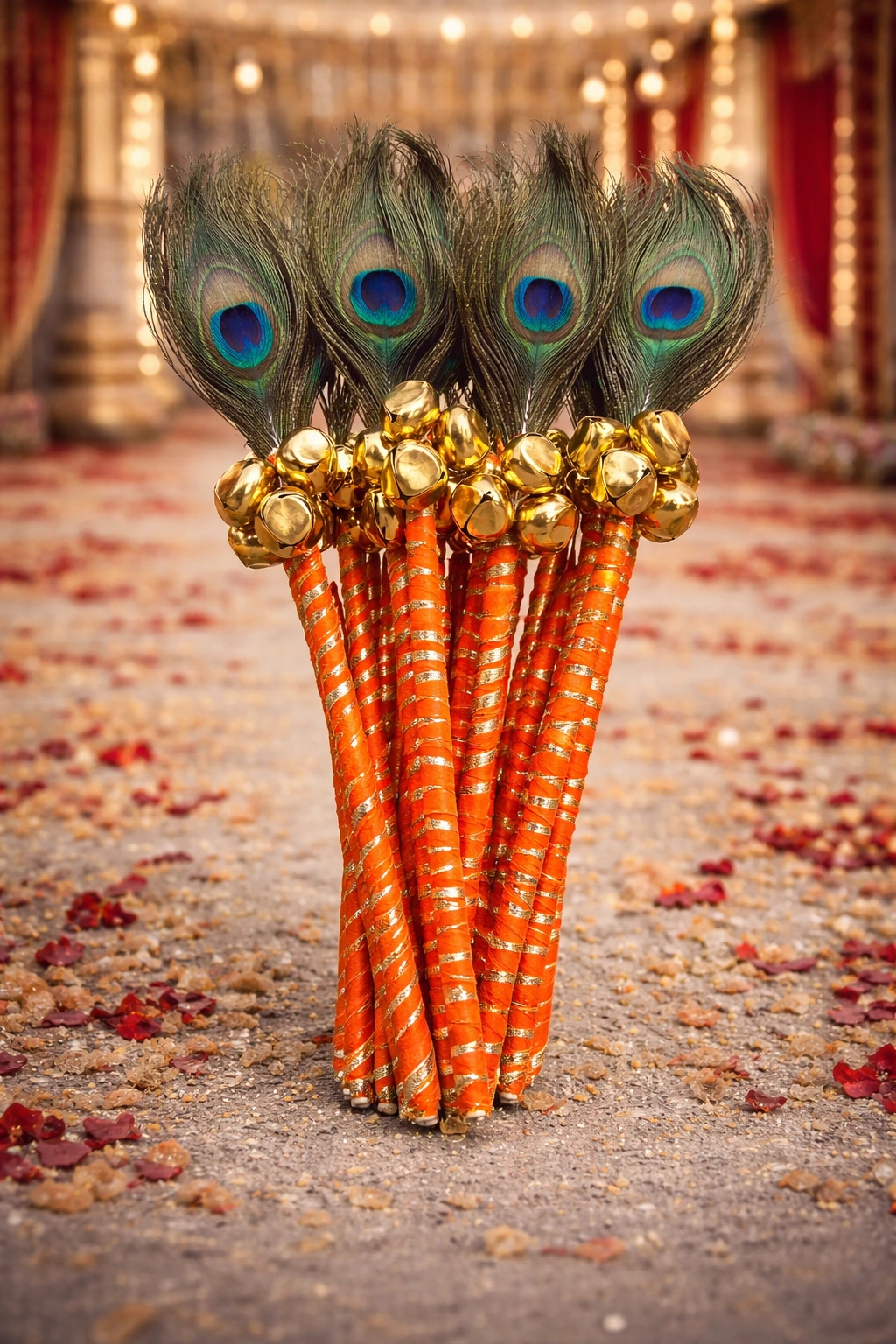 Celebrate wedding rituals with our beautifully crafted Wooden Phera Bell Rattles , designed to add joy and tradition to every wedding ceremony. Made from high-quality wood with decorative elements, these bells produce a pleasant sound perfect for phere rituals, bridal entries, and festive celebrations. Ideal for wedding planners, decorators, and event organizers. A unique and eco-friendly addition to Indian weddings and cultural functions. Morpankh Design Wooden Phera Bell Rattles. Beautifully handcrafted from premium wood and adorned with elegant peacock feather (morpankh) detailing, these bells create a soothing sound during phere and other wedding rituals. Perfect for bridal entry, varmala ceremony, festive decor, and gifting. A blend of tradition, elegance, and craftsmanship—ideal for wedding decorators and event planners.
