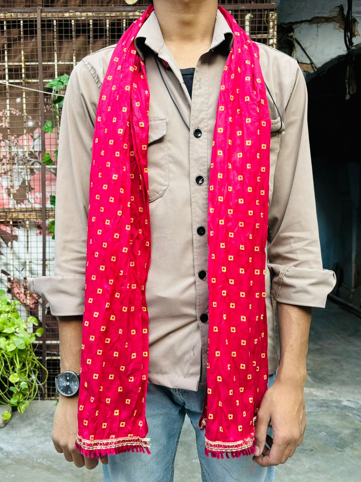 Crafted from lightweight and comfortable fabric, it is easy to drape and carry throughout the function. Whether you are welcoming the groom or dressing up family members for the wedding, this Bandhej phatka adds a royal and traditional touch.