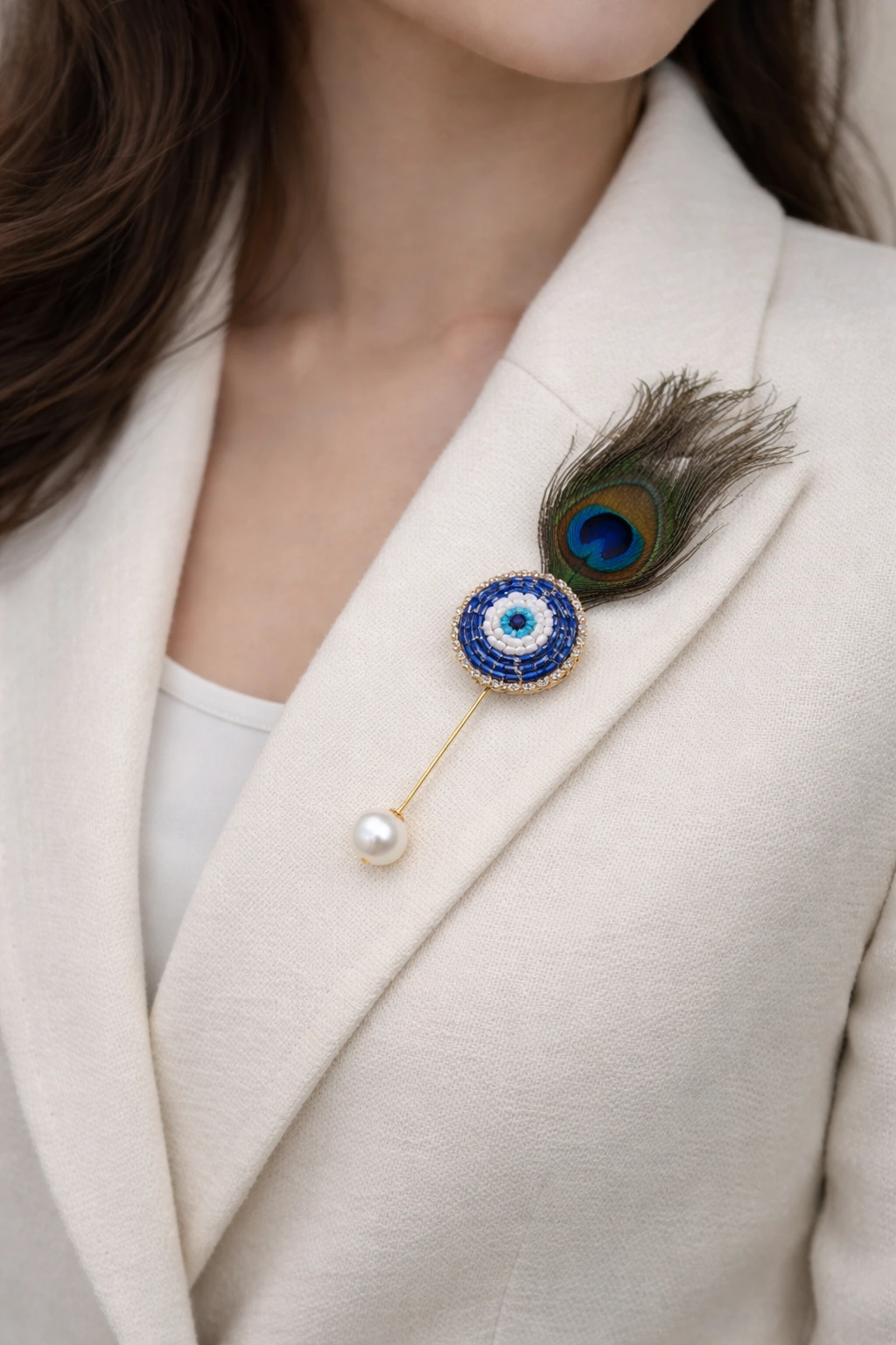 This Evil Eye Lapel Pin Brooch blends modern elegance with traditional symbolism. Crafted for durability and shine, it enhances formal and ethnic outfits effortlessly. Whether worn on a blazer, kurta, or dress, it adds a subtle yet meaningful statement. A perfect choice for return gifts, corporate gifting, weddings, and personal styling.Evil Eye Lapel Pin Brooch. Designed with a sleek and elegant finish, this brooch is perfect for blazers, suits, jackets, sarees, and dresses. The evil eye symbol is believed to protect against negativity while adding a fashionable charm. Ideal for daily wear, festive occasions, weddings, and thoughtful gifting.