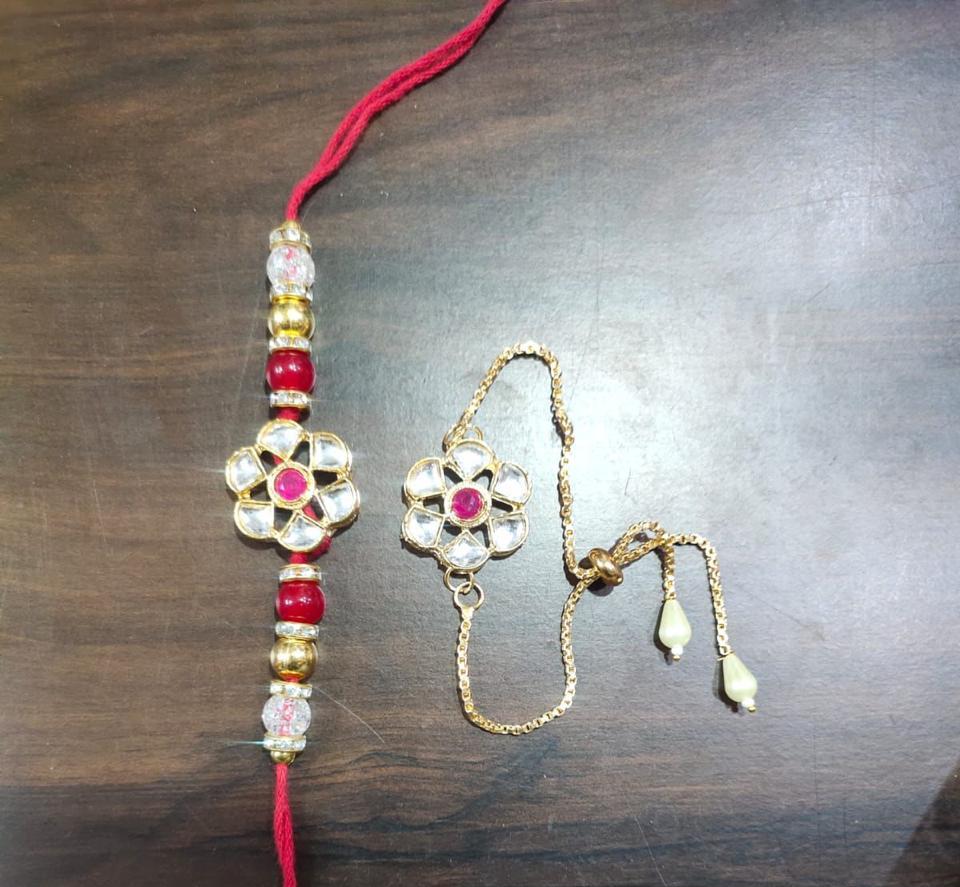 This rakhi is ideal for gifting, family celebrations, and festive rituals. Whether you are celebrating at home or sending love from afar, this designer rakhi adds grace and warmth to your Raksha Bandhan.