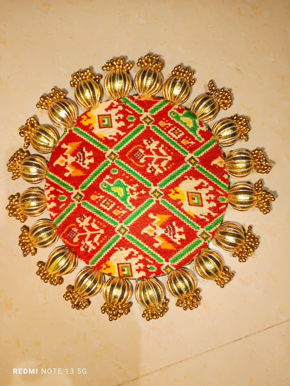 elegance to your celebrations with this Golden Rangoli Mat, designed to create stunning rangoli patterns effortlessly. Perfect for **Diwali, weddings, housewarmings, and pooja decorations**, this mat helps you design beautiful rangoli using colors, flowers, or pulses.