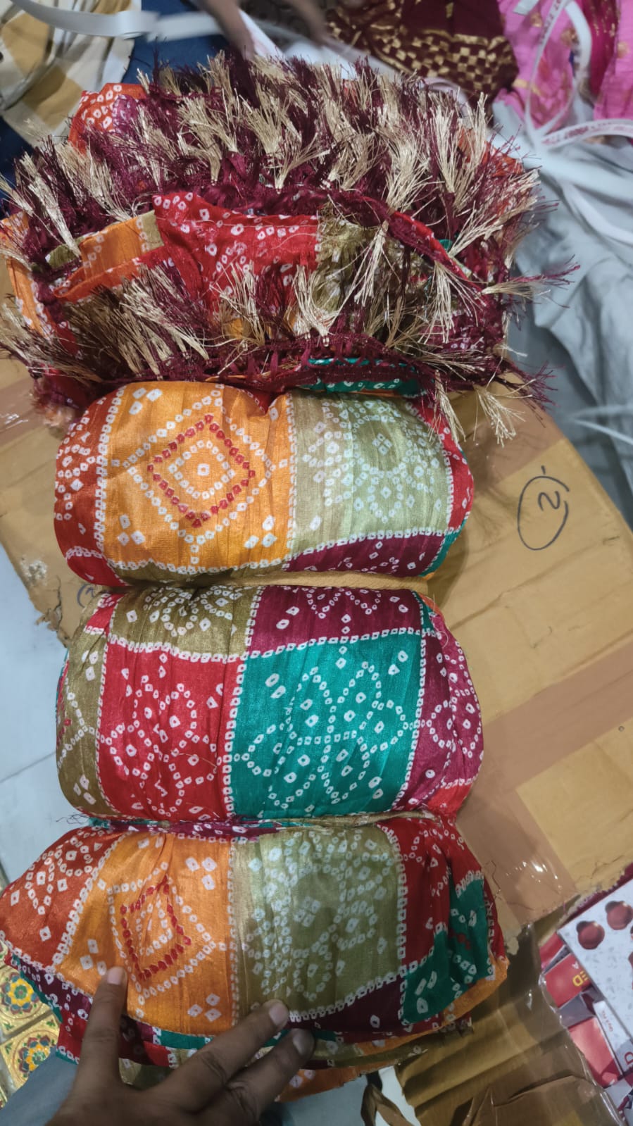 Made in classic Bandhani style, the multicolor patterns bring elegance, positivity, and cultural charm to every ceremony. It is ideal for welcoming the groom (baraat swagat), bridal entry, pooja rituals, and traditional functions. Lightweight and comfortable, it drapes gracefully and enhances the overall look of the ceremony.