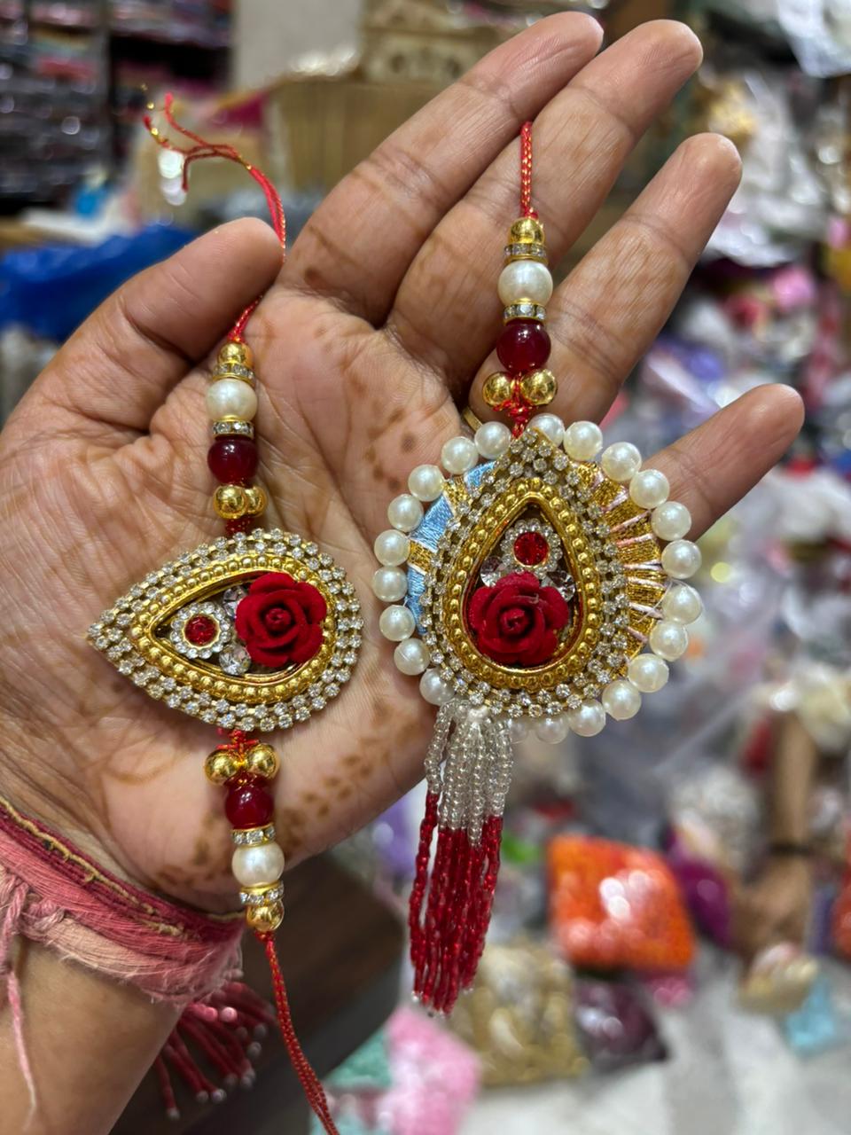 Celebrate the bond of love and respect with our beautifully handcrafted **Lumba Rakhi for Bhabhi**. Designed with intricate details, vibrant beads, pearls, and decorative embellishments, this rakhi is perfect for expressing your love and appreciation for your sister-in-law.