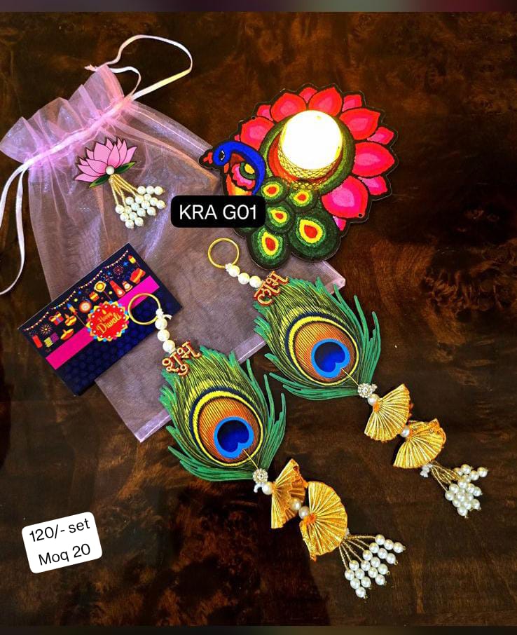 Each mini bag is designed with vibrant colors, elegant packaging, and high-quality devotional items that instantly enhance the festive mood. The Shubh Labh symbol attracts prosperity and good fortune, while the LED light adds a warm, spiritual glow—making the hamper a meaningful keepsake your guests will cherish.