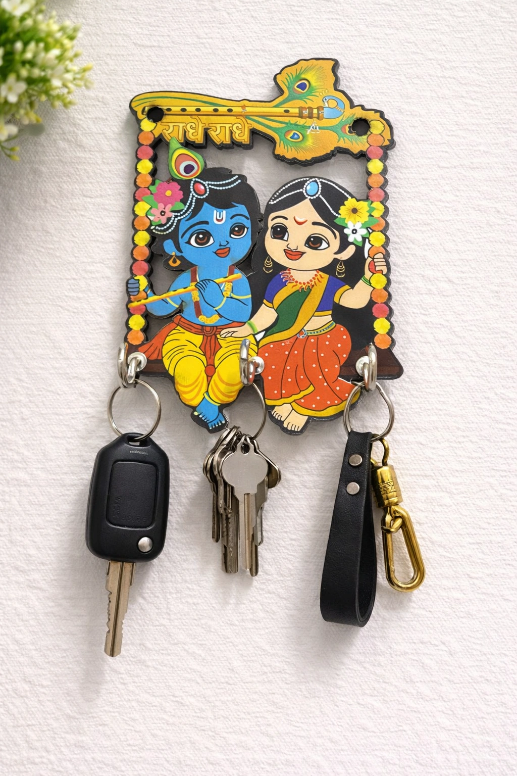 This Radha Krishna key holder is also a thoughtful gift for housewarming, festivals, return gifts, or spiritual occasions. Its elegant design blends well with traditional and modern interiors.
