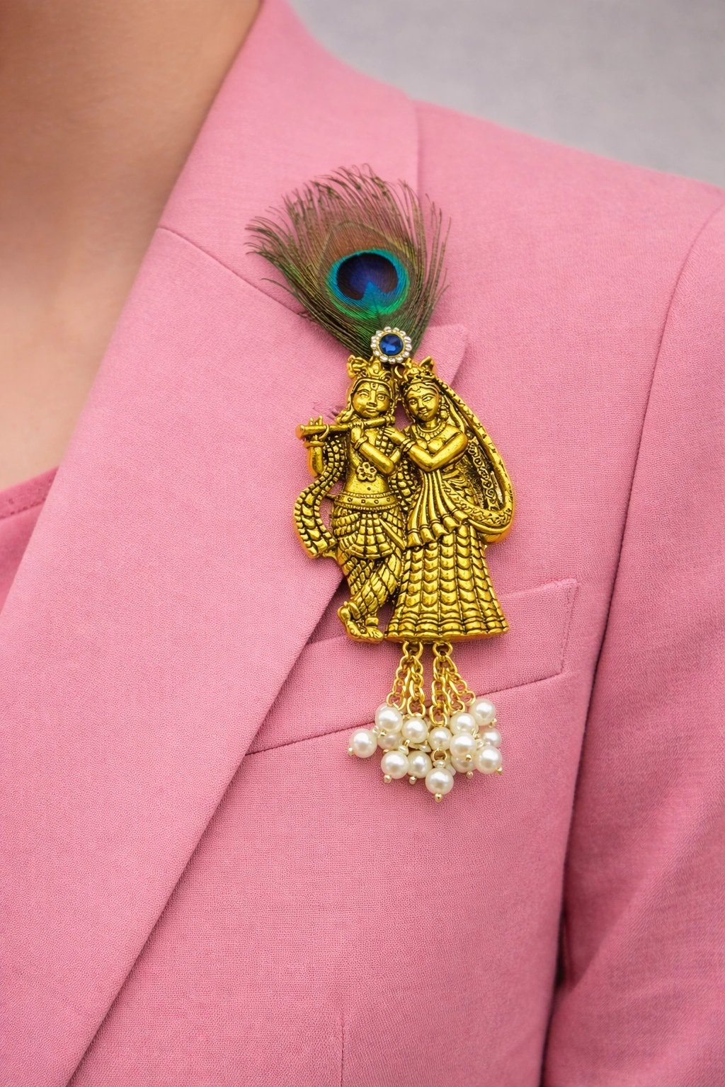 Radha Krishna brooches are popular as both spiritual symbols and fashion accessories, often worn during religious events, festivals, or as daily wear. They are considered to bring blessings, peace, and positive energy to the wearer. These brooches are also gifted as tokens of devotion and love.