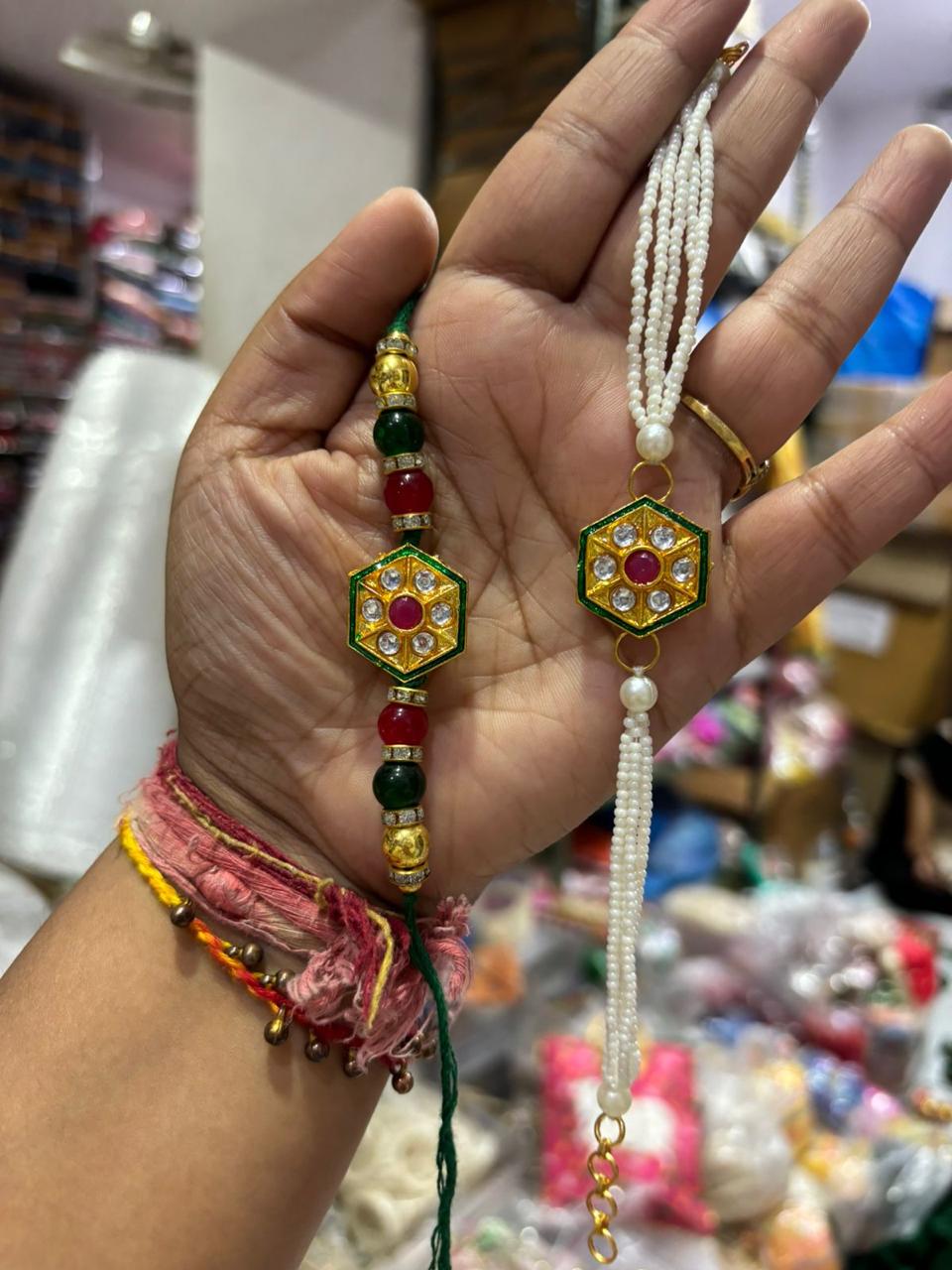 Celebrate the beautiful bond of Raksha Bandhan with this Premium Green and Red Stone Rakhi Bracelet. Designed with rich green and red stones, this rakhi combines tradition with a stylish bracelet look, making it perfect for modern brothers.