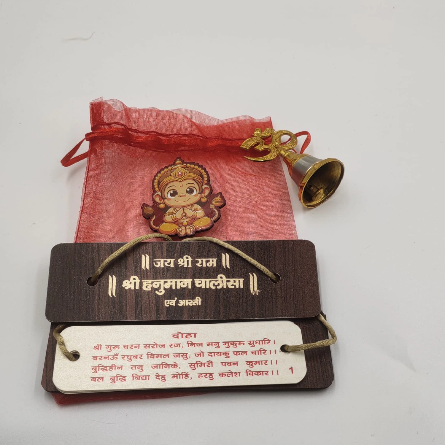 Religious Sunderkand Gift Hamper with Hanuman Chalisa and Om Bell