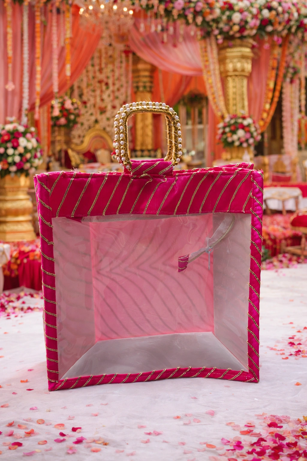 This Gota Design Potli Bag is crafted with traditional Indian detailing and a premium festive look. Made with fine gota lace work and soft fabric, it adds a beautiful touch to any ethnic outfit. The potli is lightweight, elegant, and spacious enough to carry essentials like phone, cash, and small accessories.